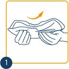 - Pliez la protection ID-Ontex light en deux dans le sens de la longueur afin de lui donner une forme incurvée.